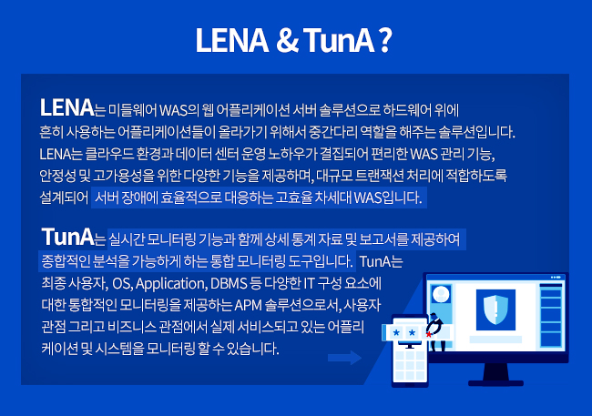신민채 저는 WEB WAS 쪽을 하고 있는데요 LENA(레나)와 TunA(튜나) 등 솔루션 관련 업무를 담당하고 있습니다.