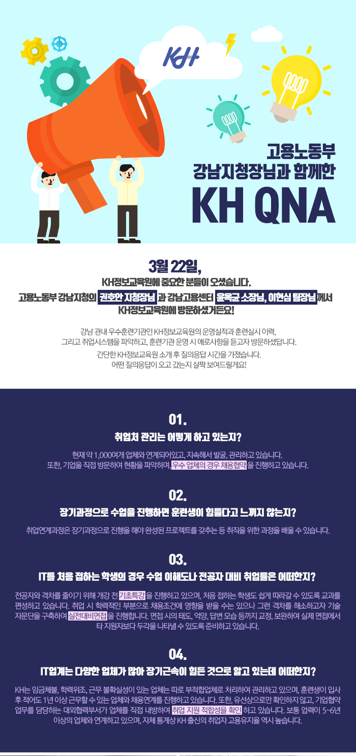 KH임직원은 수강생 한 분 한 분의 성공적인 취업을 위해 최선을 다하겠습니다.
