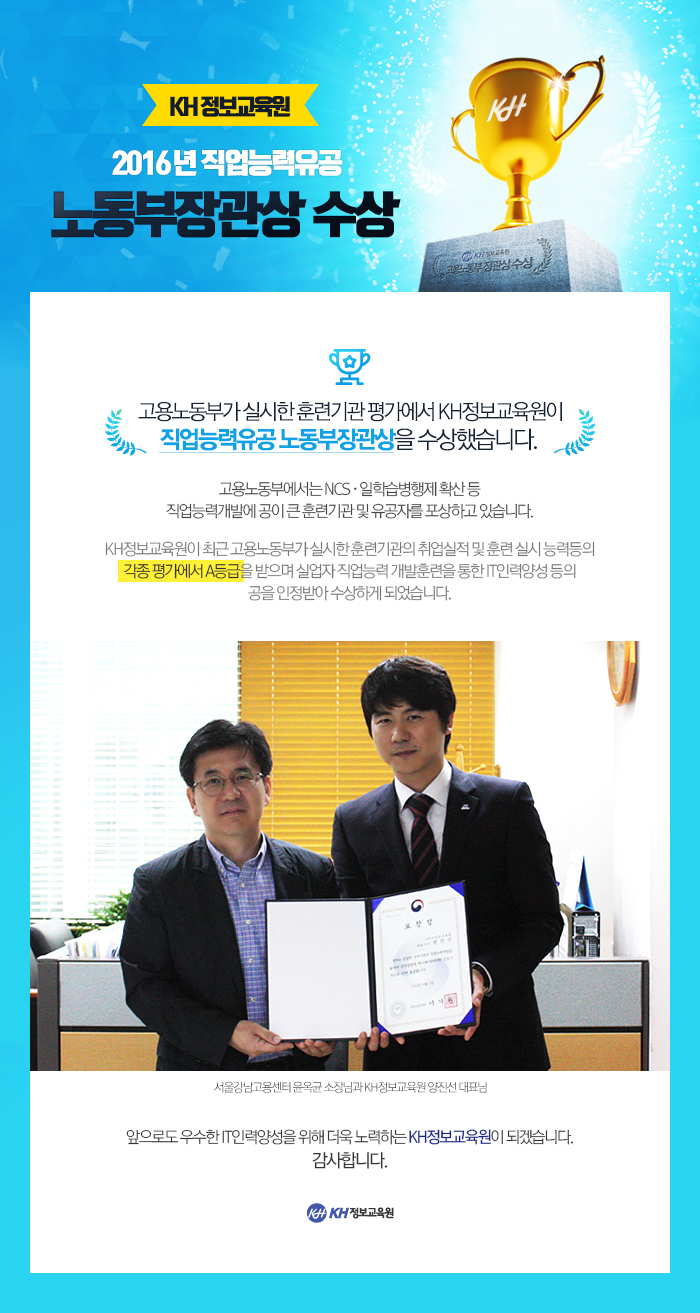 No.1 국내 최대의 취업 실적을 보유한 KH정보교육원에 오신 것을 환영 합니다.