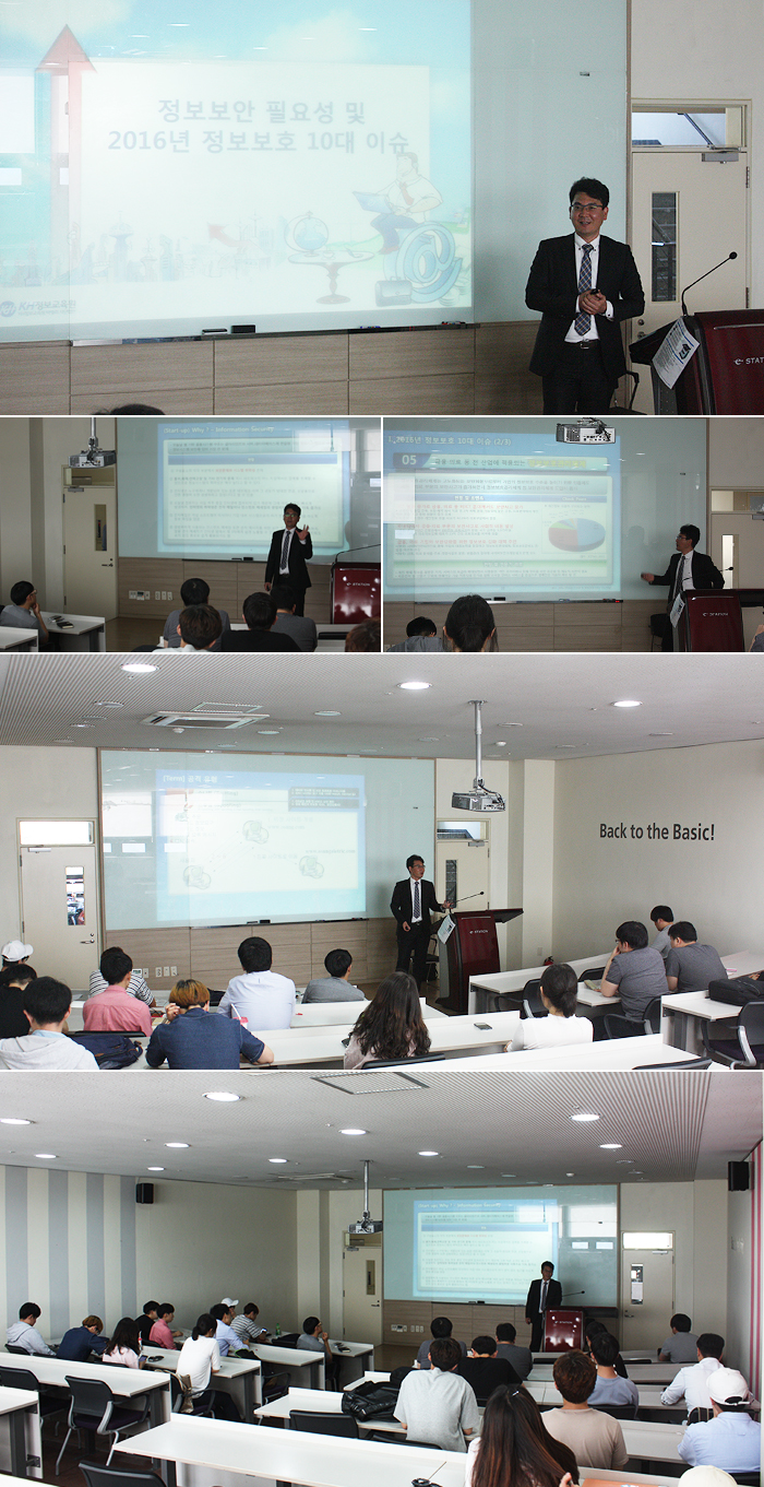 이 날 두원공과대에서는 "정보보안 필요성 및 2016 정보보호 10대 이슈"를 주제로 ICT특강을 진행했습니다.