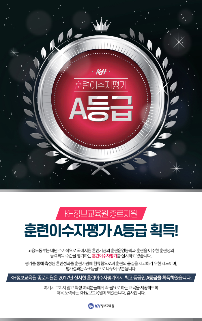 KH정보교육원 종로지원 훈련이수자평가 A등급 획득