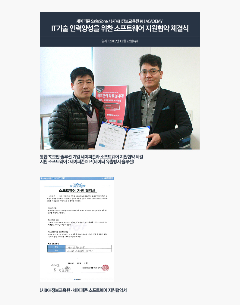 세이퍼존 SaferZone / (사)KH정보교육원 KH ACADEMY IT기술 인력양성을 위한 소프트웨어 지원협약 체결식