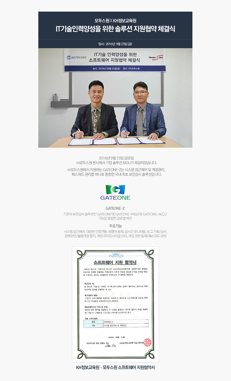 (주)모두스원 / KH정보교육원 솔루션 MOU체결