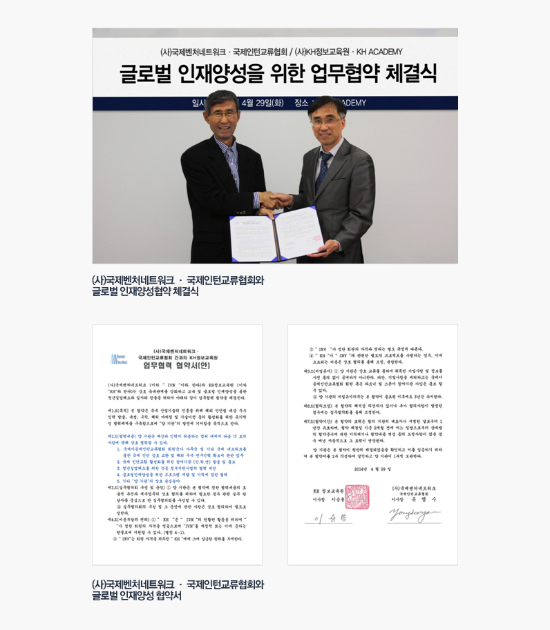 (사)국제벤처네트워크·국제인턴교류협회 글로벌 인재양성협약